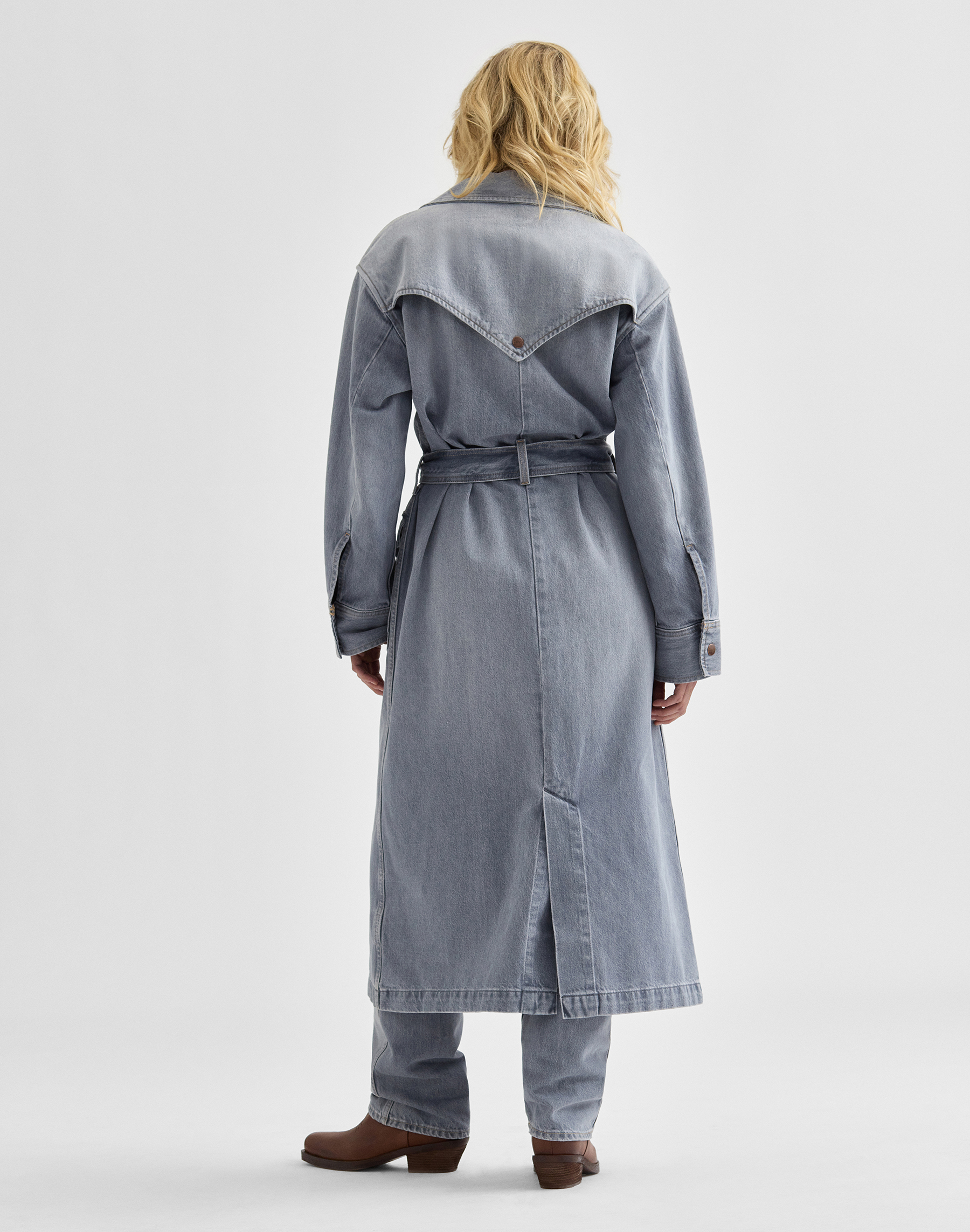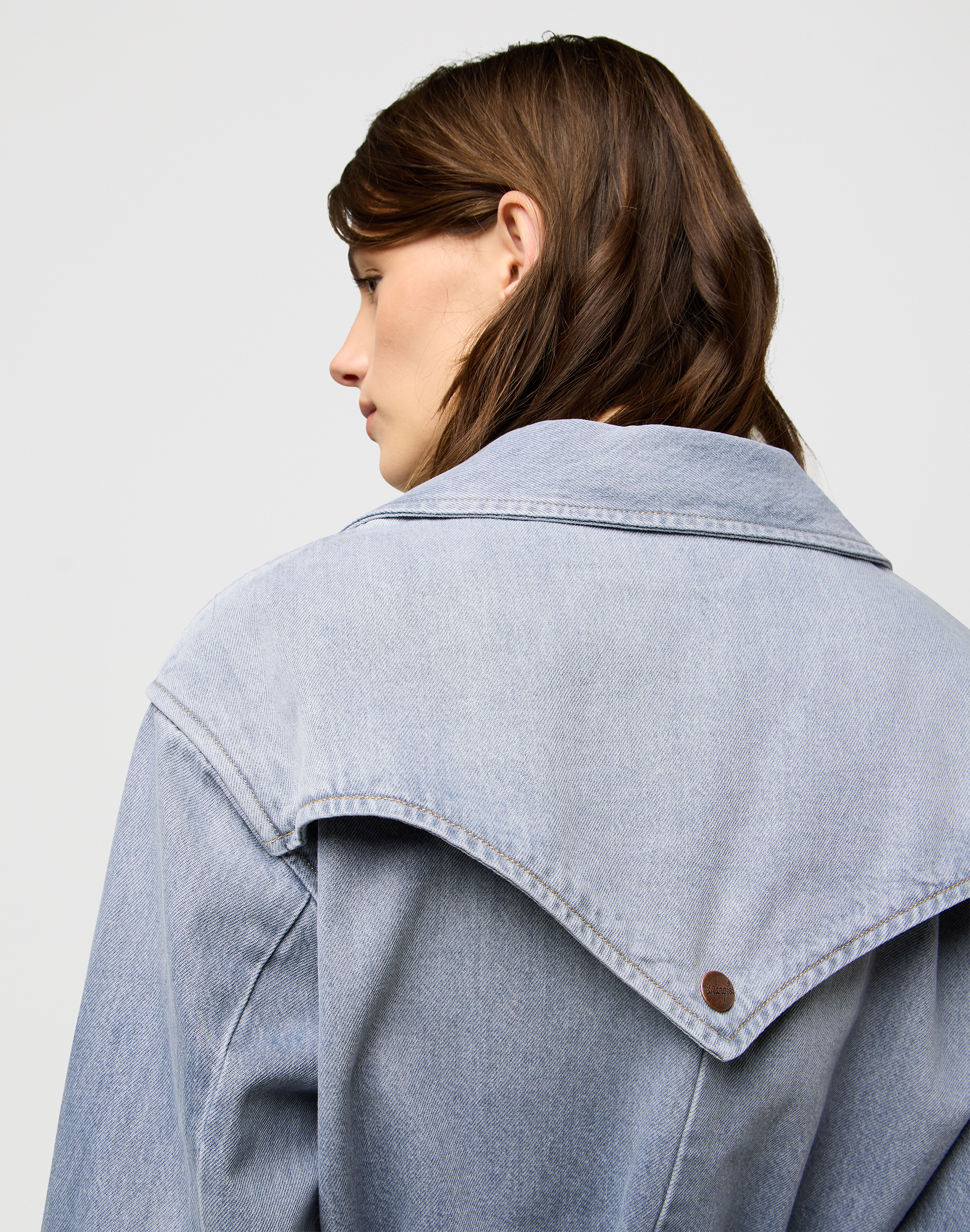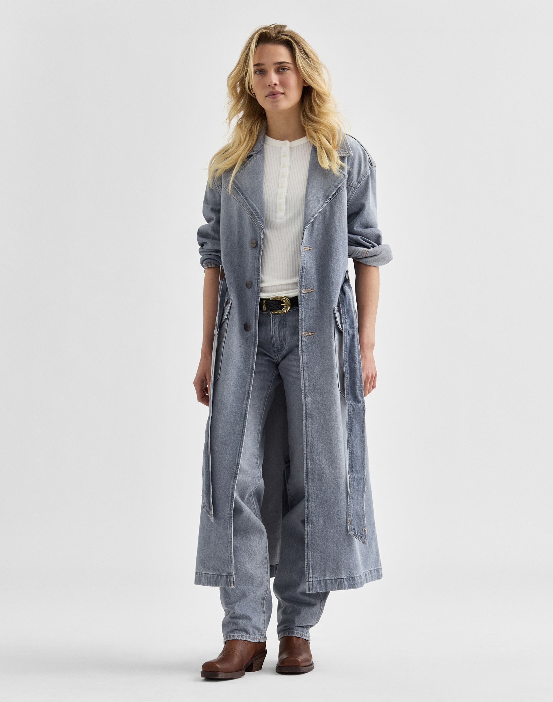 - ג’קט הדנים הזה הוא בדיוק מה שאת צריכה כדי לשדרג כל הופעה – פריט נוכח עם שיק קליל. הגזרה הארוכה כוללת כפתורים מלפנים, כיסים עם סגירת תיק-תק ותפרי W קלאסיים שמזכירים את שורשיו המערביים של המותג.