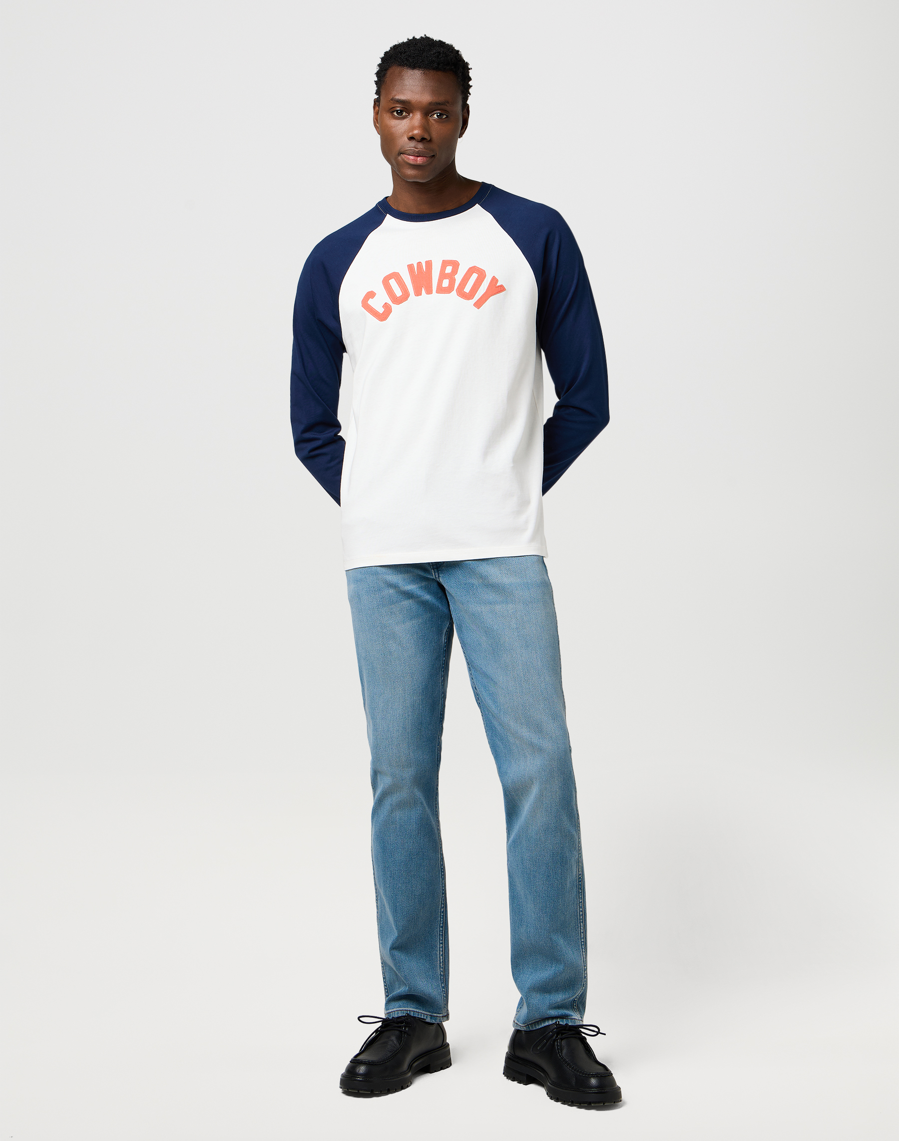 • חולצה בגזרת רטרו שמביאה את עולם הבייסבול למראה יומיומי עם טוויסט מערבי.