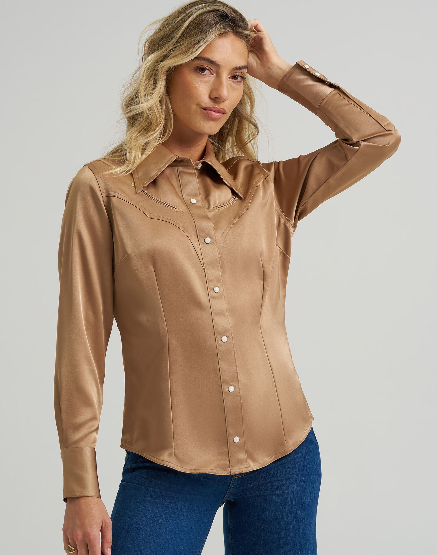 חולצת סאטן מכופתרת מקולקציית Wrangler® X Lainey Wilson